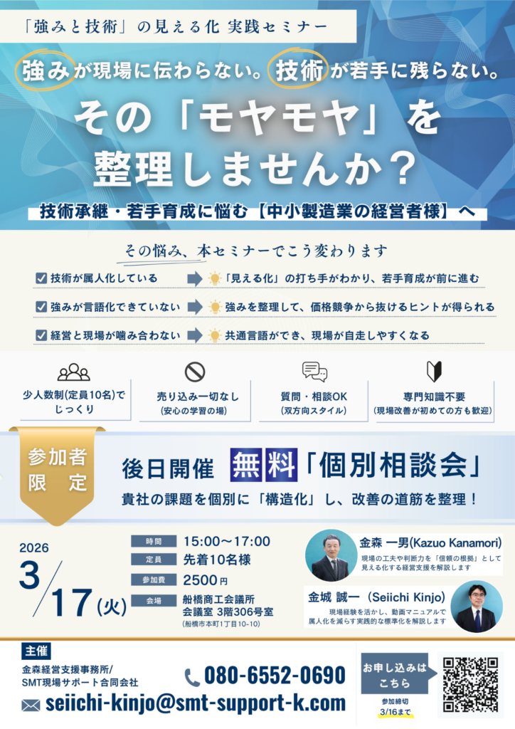 【2026年3月17日】 「強みと技術」の見える化実践セミナー